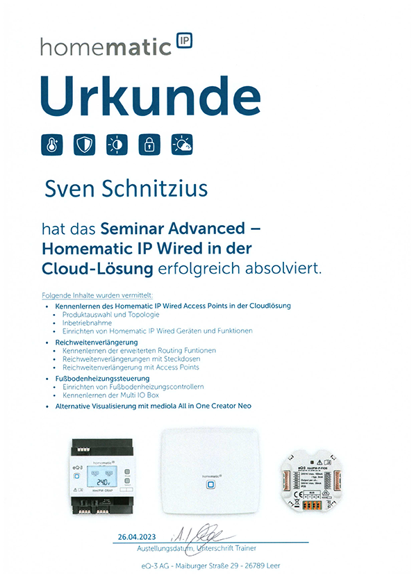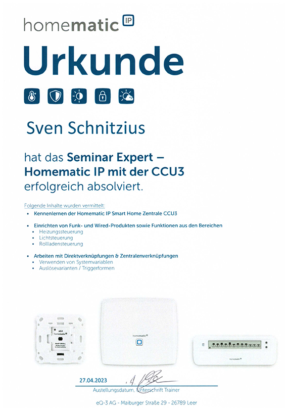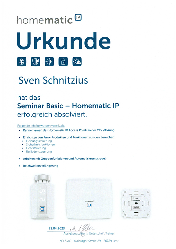 Wir arbeiten mit Homematic IP und sind einer von über 2.800 autorisierten Installationspartnern.